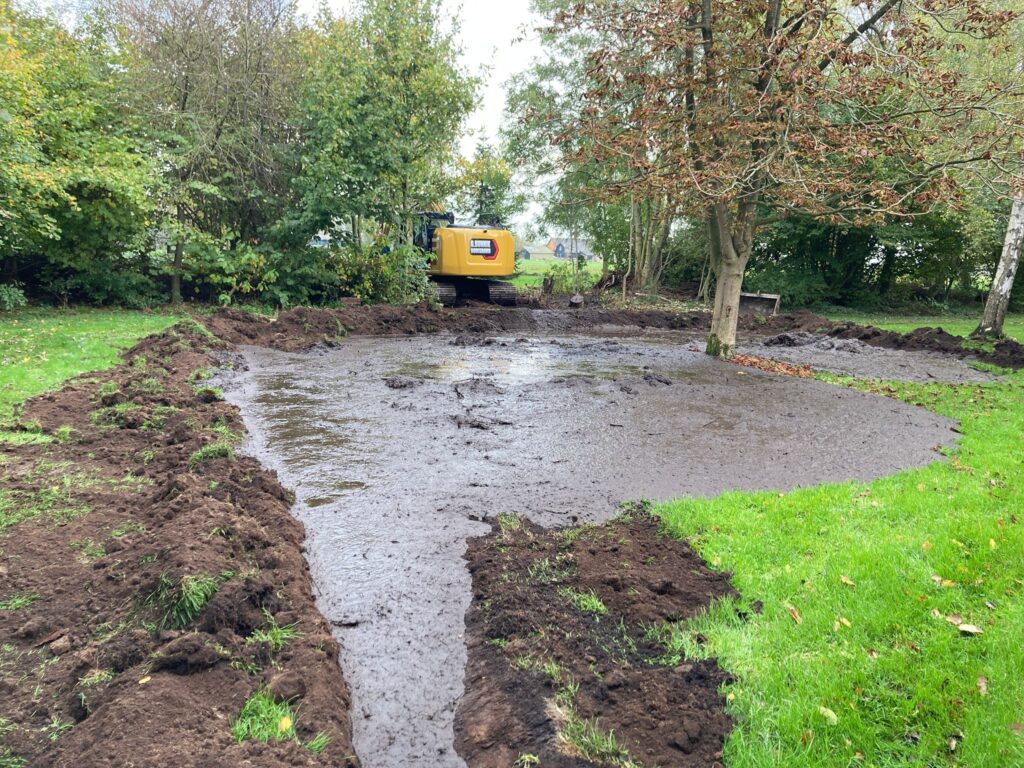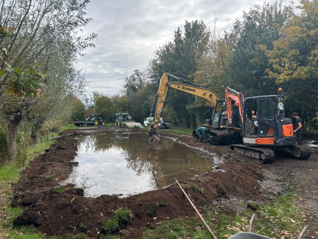 Afgelopen week zijn de scheisloot en de vijver uitgebaggerd.